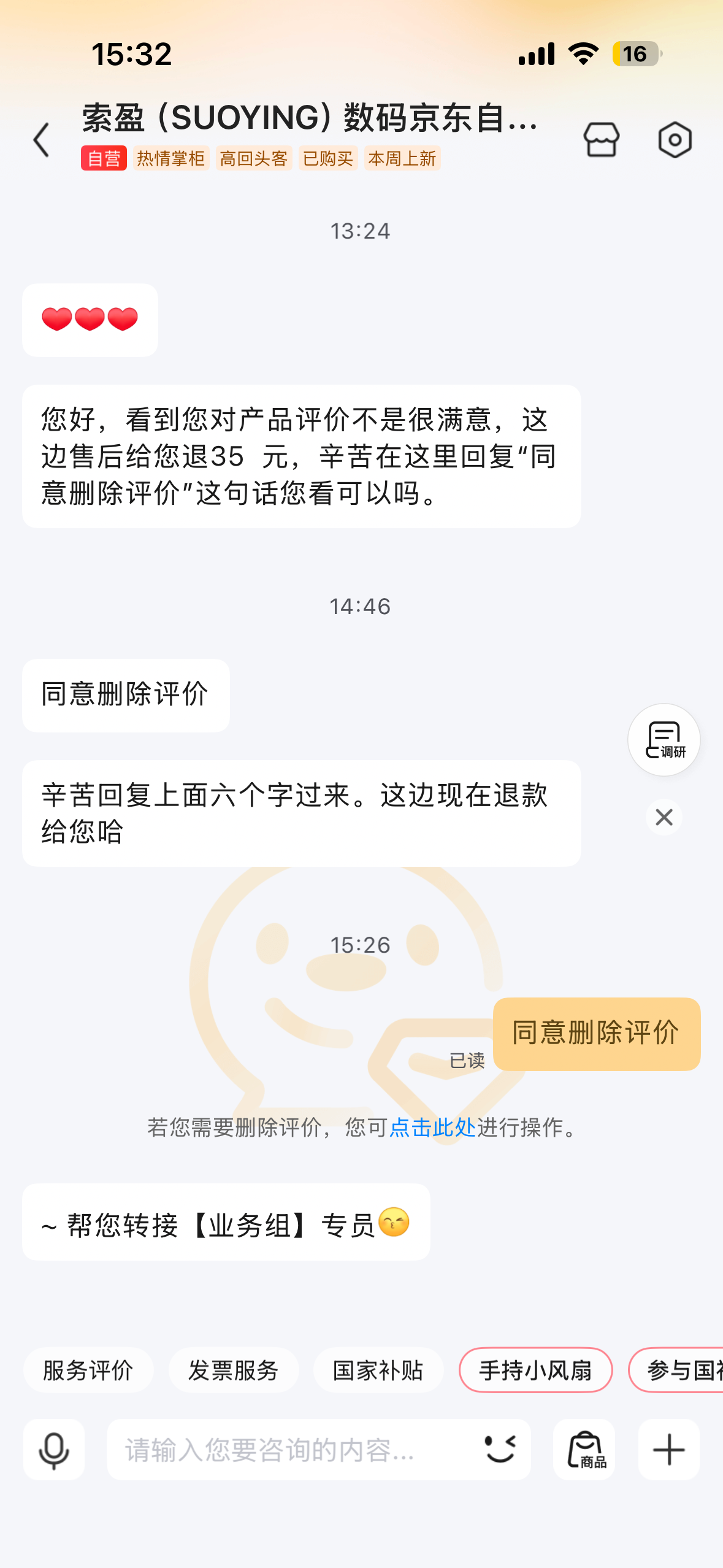 很简单的一件事情,在网上购物写了个差评,商家说退款不退货删除差评,我同意了。